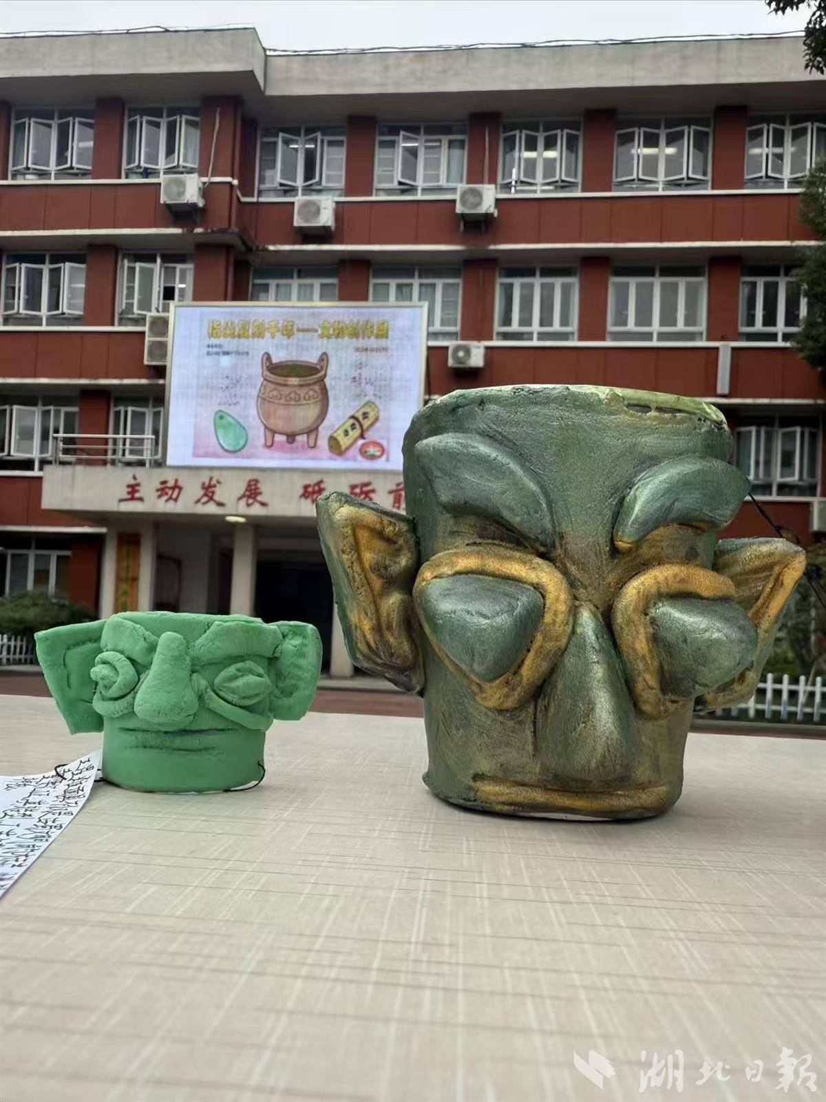 湖北日报讯(记者张倩倩、通讯员谢晓涵、郭芳丽)三星堆面具、越王勾践剑、古代钱币……近日,武汉市红钢城中学首届“历史文物复刻”手工创作展评活动现场,学生们用巧手让国宝从课本里走出来,成为可触可感的实物。